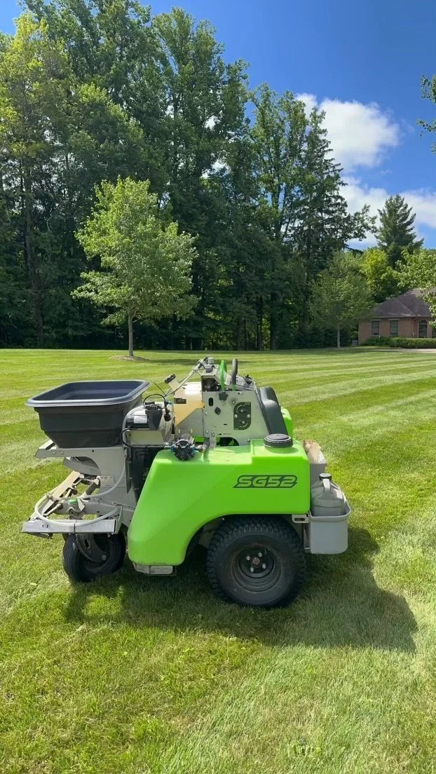 A process to help air, nutrients and water into the soil, Overseeding with High Quality Seed and Starter Fertilizer